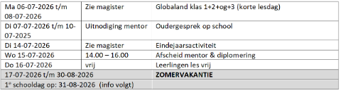 Op deze lijst staan dagen waarop wij een aangepast lesrooster volgen.